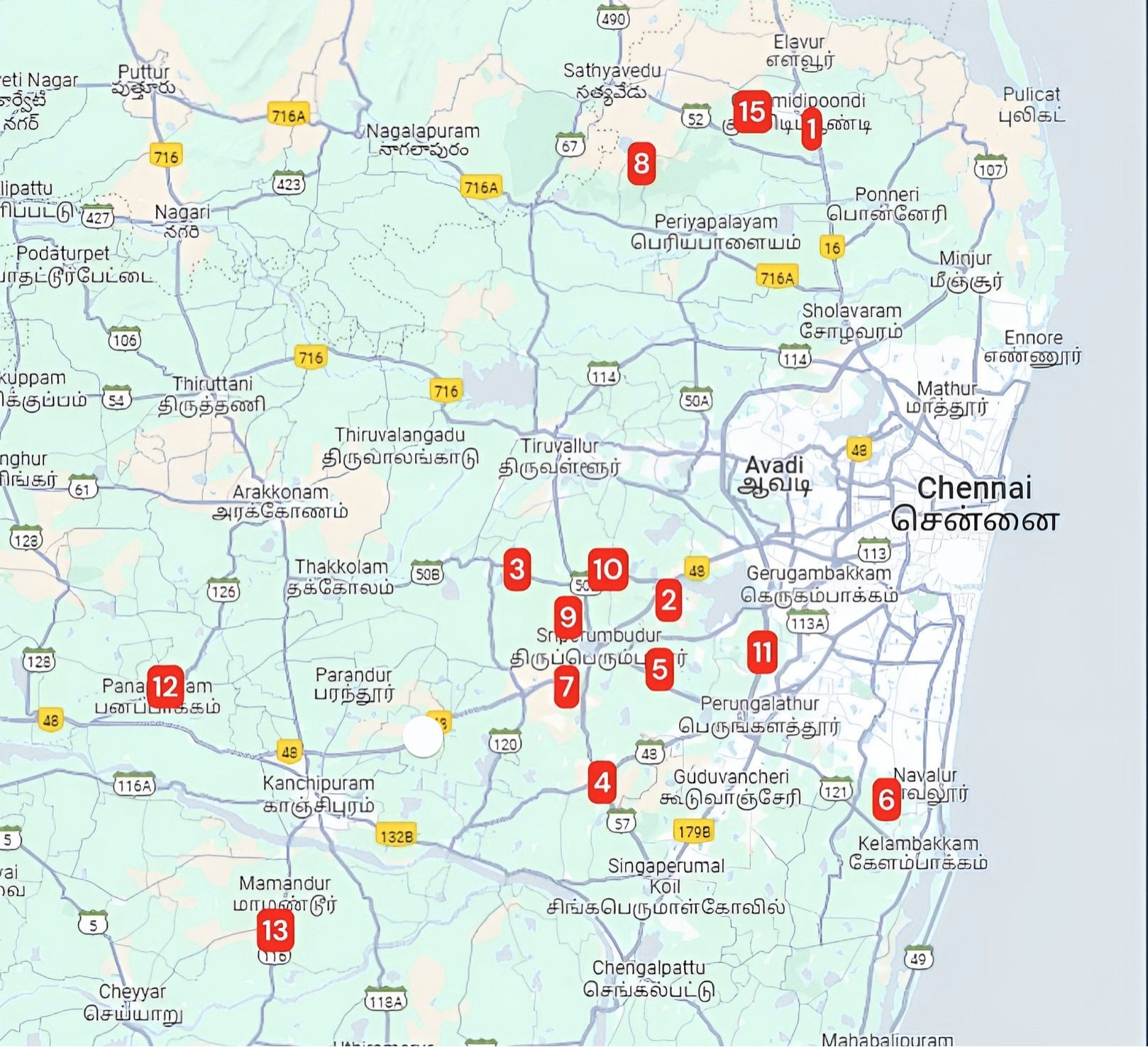 SRIPERUMBUDUR 2219.63 1,250 Automobile, Engineering, Electronics, IT, Aerospace